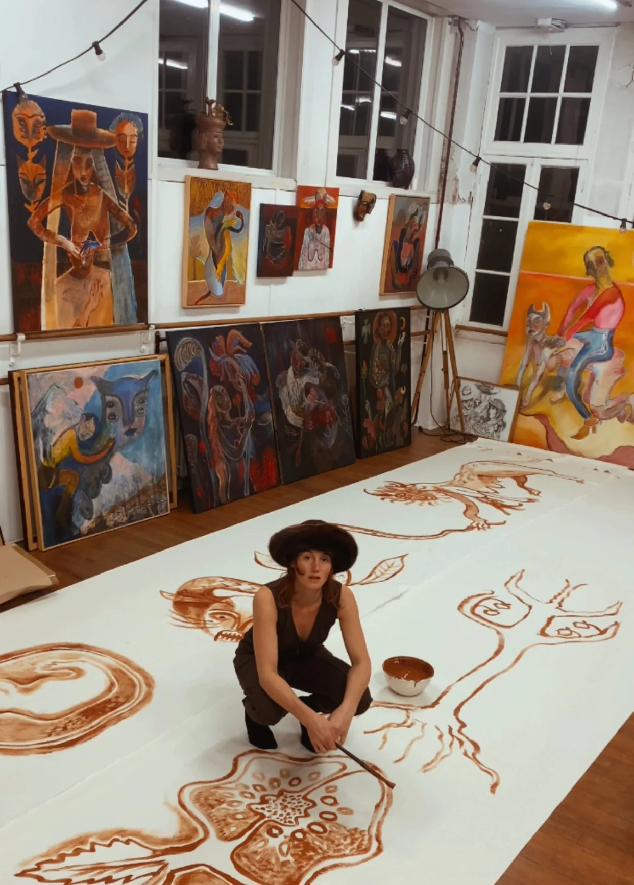 Currently, Eva is developing a series of ten performances and living installations titled Mothers of Art. Each chapter focuses on the life and work of a different female artist. From this research, she creates her own body of visual and performative work in dialogue with their legacy. These pieces eventually take shape as performance, installation, or visual art.